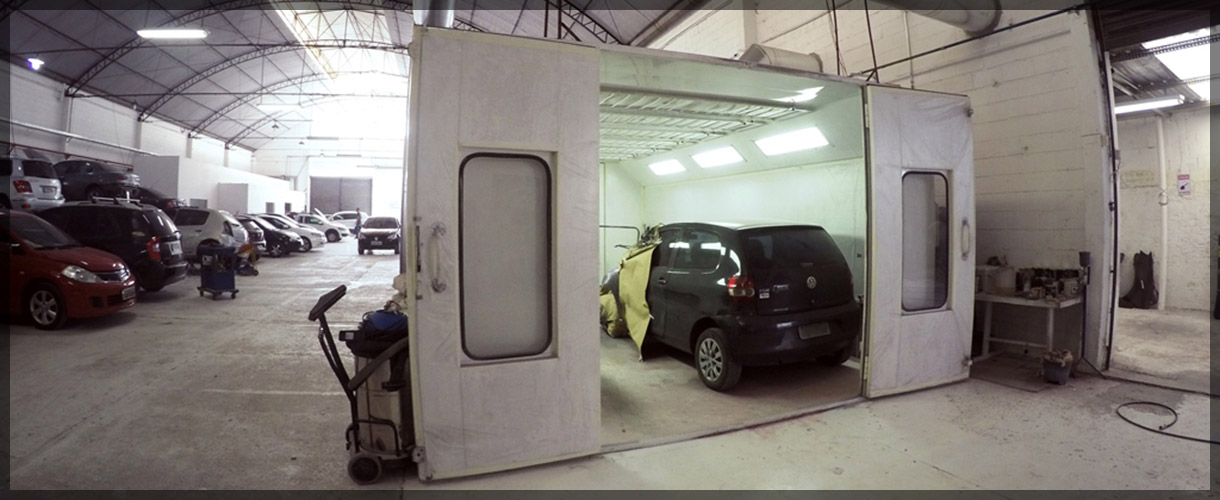 Nossa cabine de pintura é perfeitamente adequada aos padrões exigidos pelos Padrões Nacionais de Pintura Automotiva, conseguindo assim um perfeito acabamento em curto tempo.